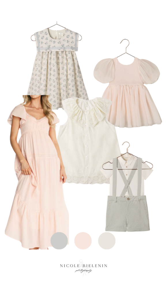 If you’re wondering what to wear for beach pictures, think in terms of a color story rather than matching outfits – and don’t be afraid to build on what you already love. The images in this moodboard are linked straight to the stores where I found them – you can download the moodboard with links here!